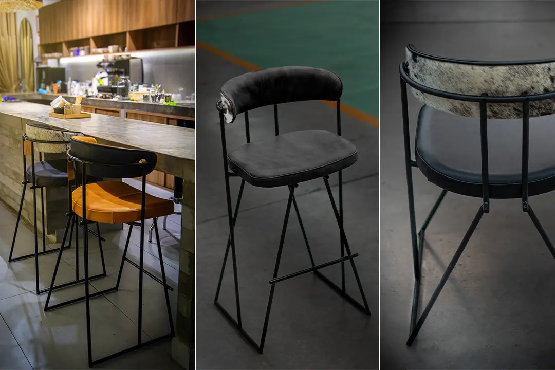 Ideal para barras de cocina o mesas altas. La Banco Saga redefine la estética minimalista combinando estructura industrial con detalles de lujo natural. Su diseño limpio y elegante la convierte en una pieza versátil, perfecta tanto para interiores residenciales como espacios comerciales que buscan distinción.